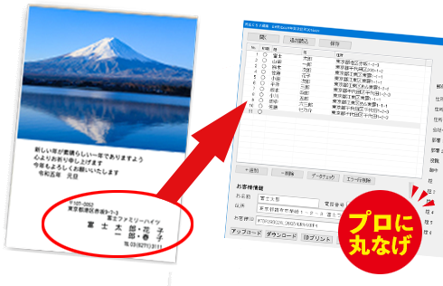 住所録に登録したいはがき等を、写真プリントコーナー(DPE)にてお預かりし、宛名情報を登録いたします。